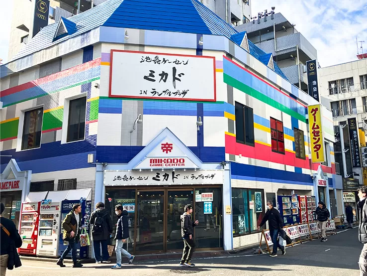 高田馬場の名物ゲームセンター「ゲーセンミカド」の姉妹店で、池袋駅東口から徒歩約3分、ヤマダ電機モバイルドリーム館の裏手にあります。