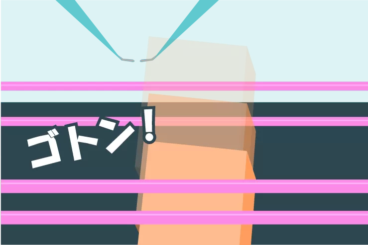 ここでは、箱が縦向きに置かれている橋渡し設定で、最も基本的な取り方である「縦ハメ」の手順とコツを紹介します。