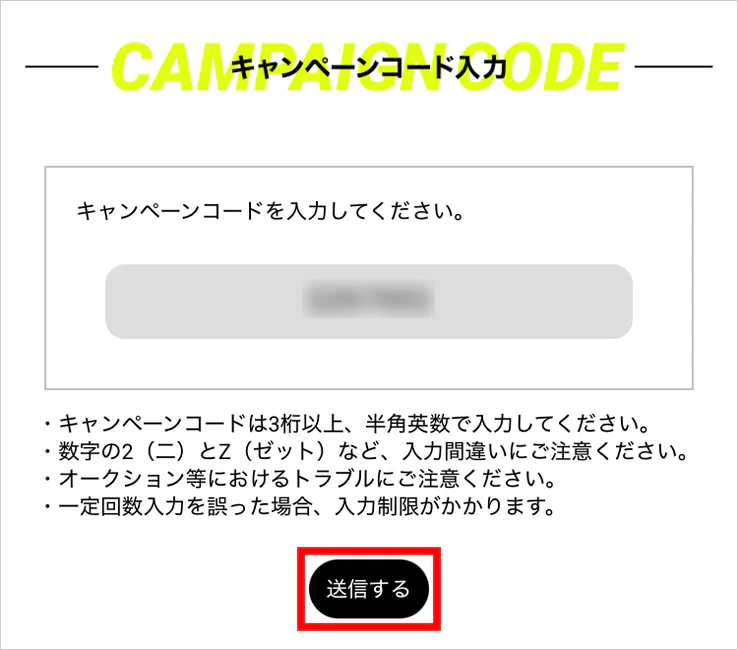 2. キャンペーンコードを送信する