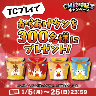 タイクレをTC(タイトーコイン)でプレイした人の中から抽選で300名様にローソンの「からあげクン」の無料券がもらえます。